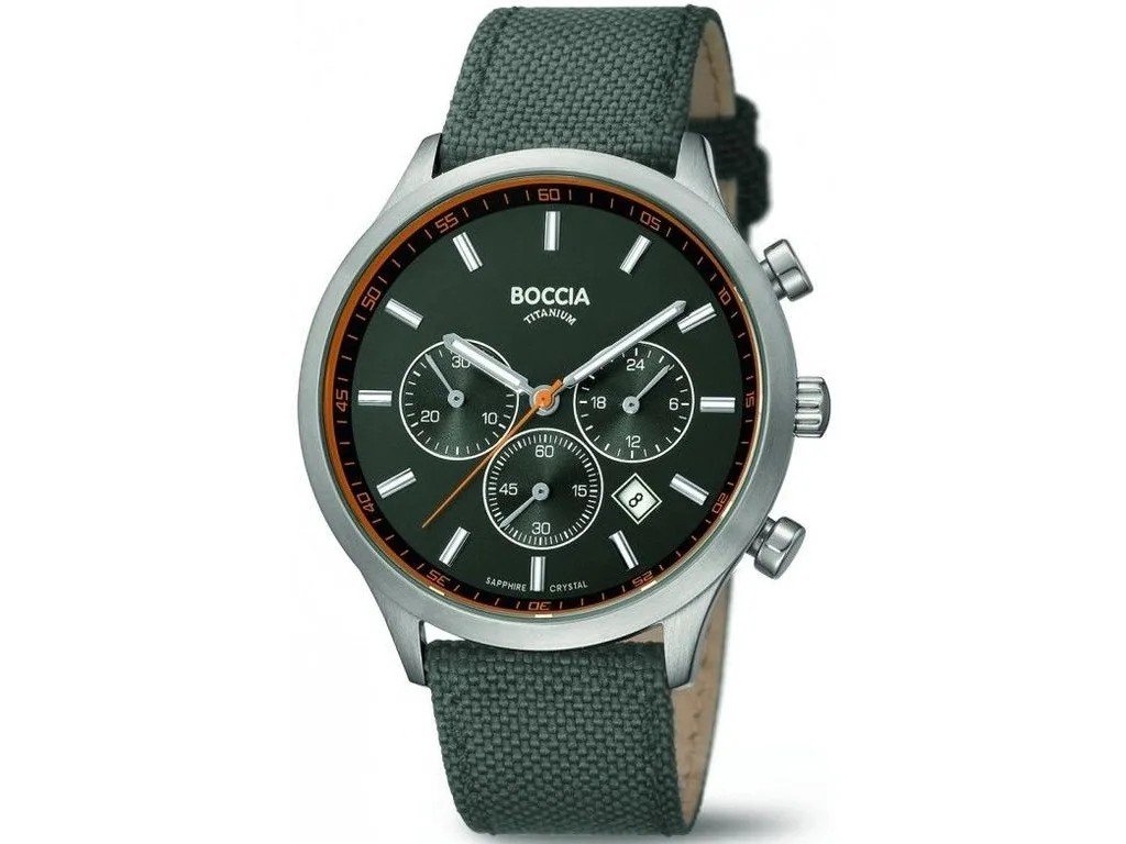 Pánské hodinky Boccia Titanium 3750-01 spojují sportovní eleganci s mimořádnou lehkostí a trvanlivostí. Jejich kulaté titanové pouzdro o průměru 40 mm je doplněno lunetou z leštěného titanu, která dodává hodinkám decentní lesk a sofistikovaný vzhled. Díky použití titanu jsou hodinky hypoalergenní, lehké a extrémně odolné vůči opotřebení.