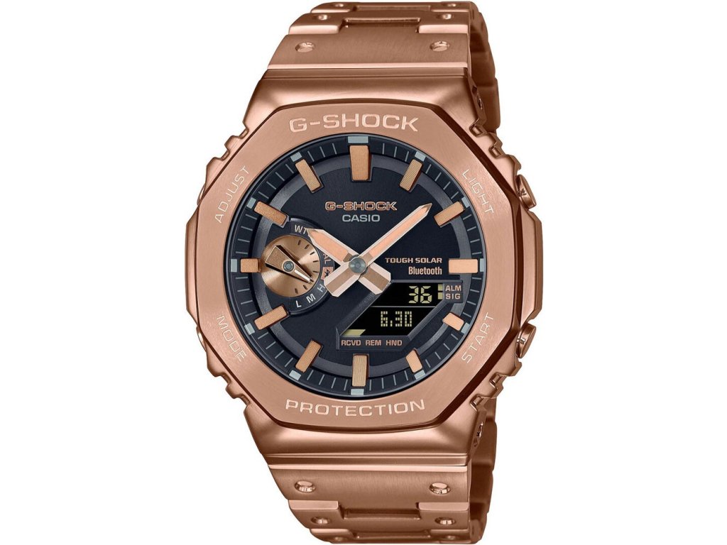Pánské hodinky Casio G-Shock GM-B2100GD-5AER z kolekce G-Classic zaujmou moderním designem v růžově zlatém provedení, celokovovým tělem z nerezové oceli a špičkovou technologií solárního napájení Tough Solar. Nabízejí kombinovaný ciferník s analogovým i digitálním zobrazením, který poskytuje dokonalý přehled o čase i doplňkových funkcích.
