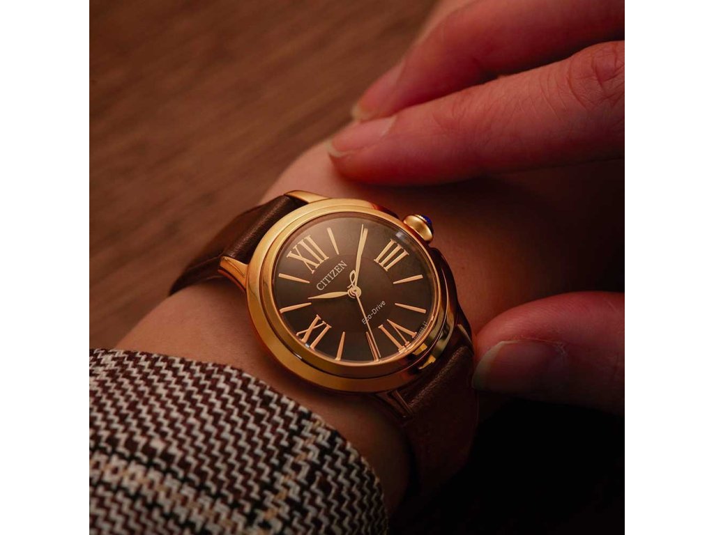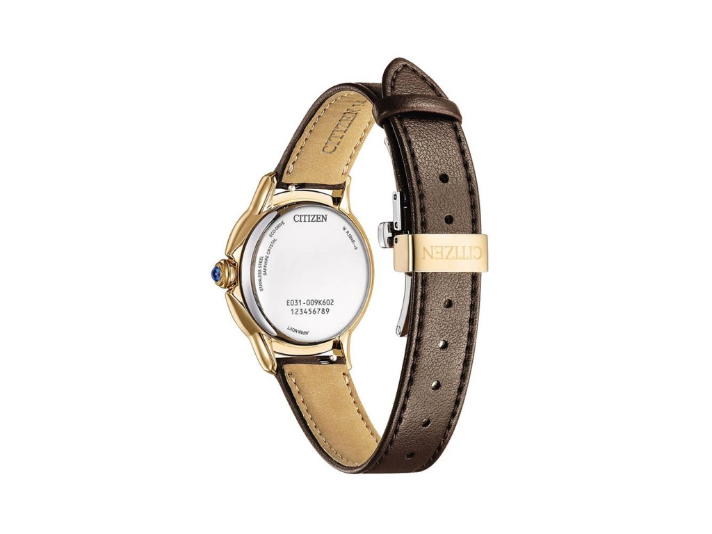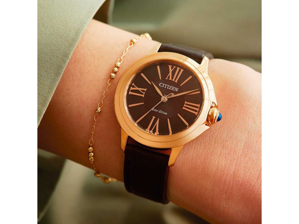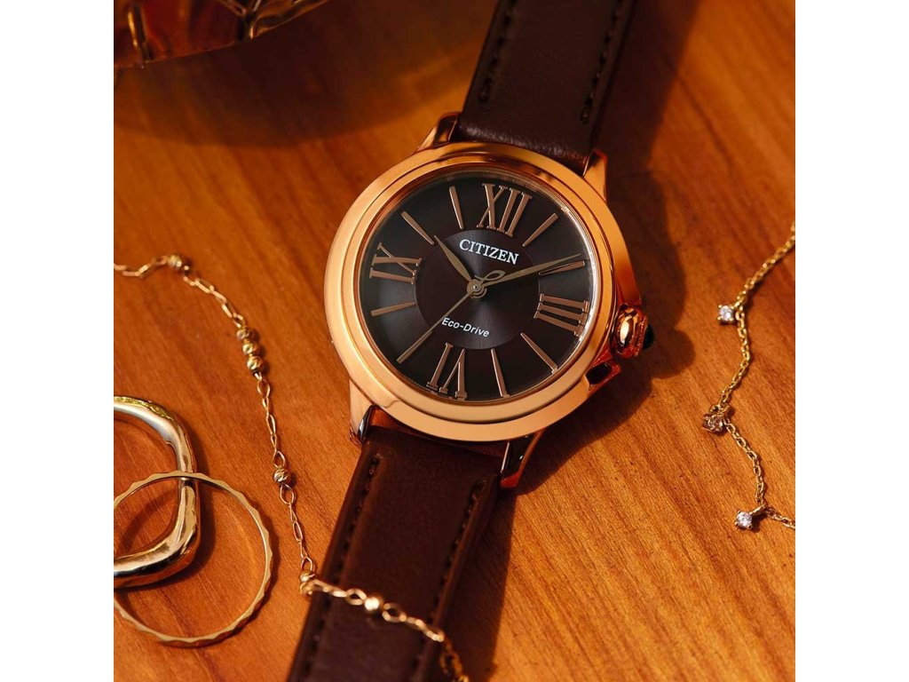 Dámské hodinky Citizen EM1163-09X představují elegantní společenský model, který spojuje nadčasový design a moderní technologii Eco-Drive. Hodinky mají pouzdro z ušlechtilé nerezové oceli o průměru 30 mm, které doplňuje kožený řemínek dodávající modelu jemnost, komfort a klasický vzhled.