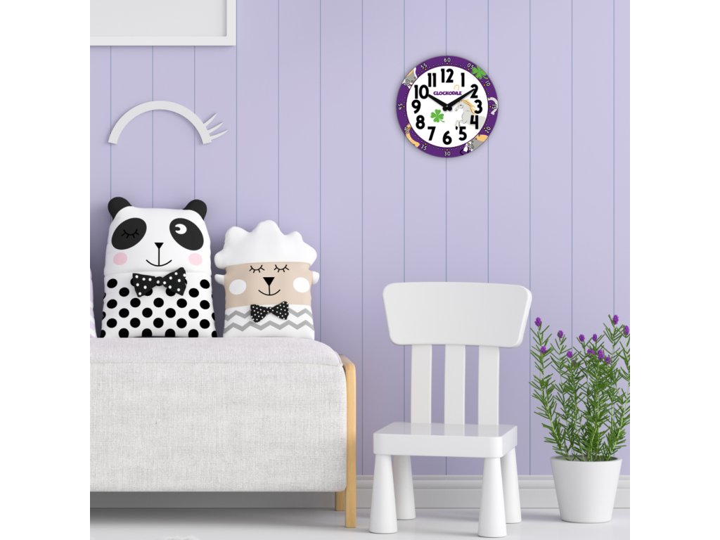 CLOCKODILE Dětské nástěnné hodiny fialové s koněm ⌀25cm