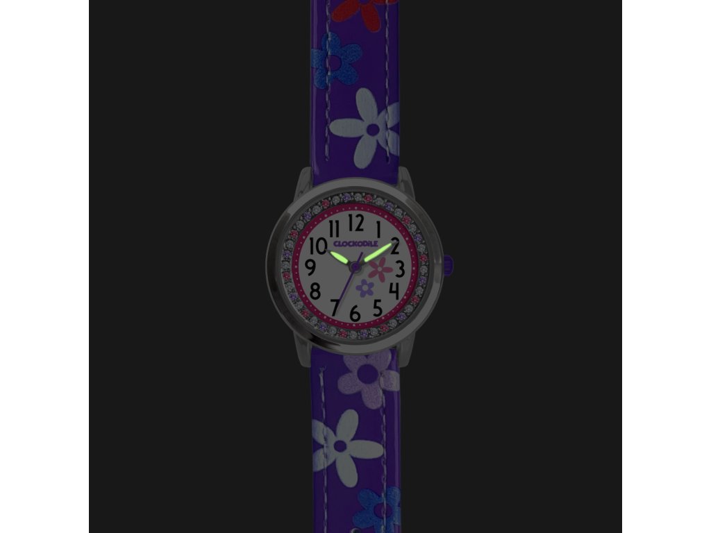 CLOCKODILE Fialové dívčí dětské hodinky s kamínky a kytičkami