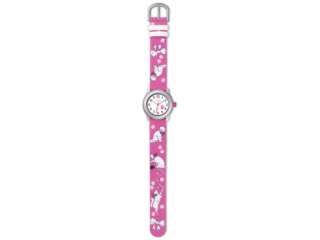 Dětské náramkové hodinky s kočičími motivy na řemínku a číselníku. Výborně čitelný číselník je vhodný pro malé kočkomilky, které se právě učí znát čas.