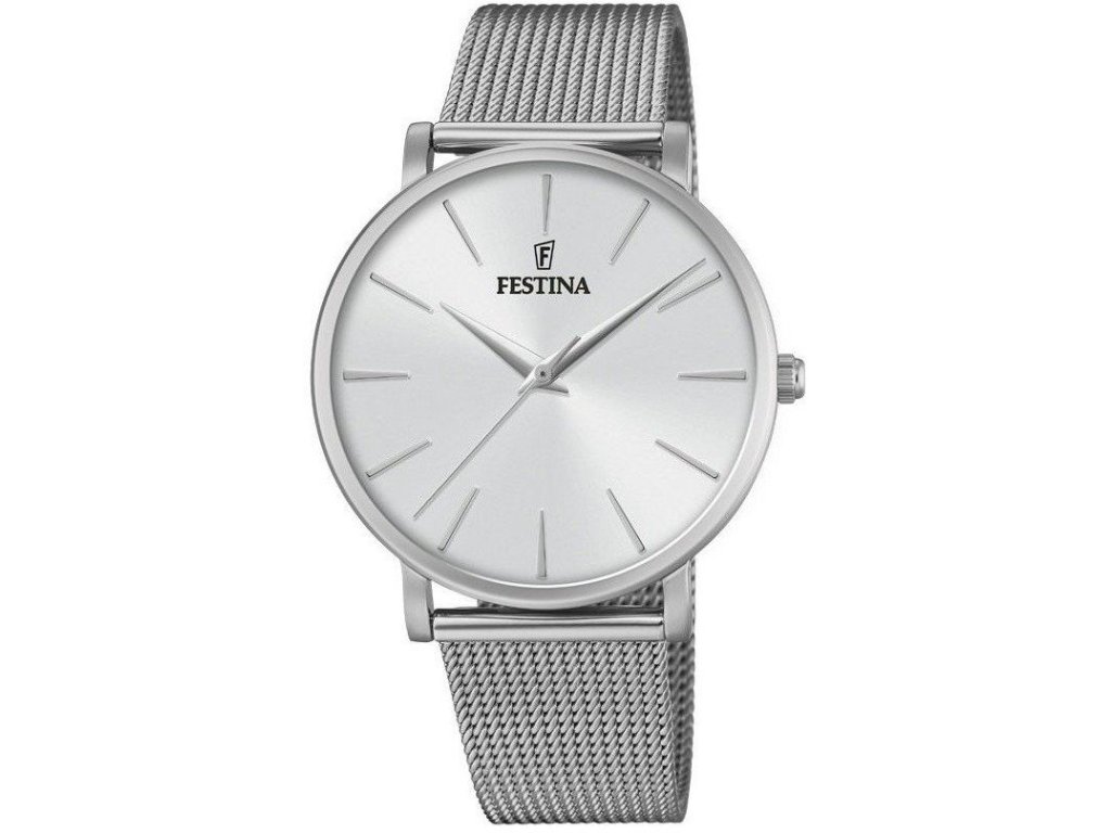 Dámské hodinky Festina 20475/1 představují nadčasovou eleganci v moderním pojetí. Klasický kruhový tvar pouzdra o velikosti 38 mm doplňuje jemný číselník o průměru 33 mm, který působí čistě, přehledně a velmi žensky.