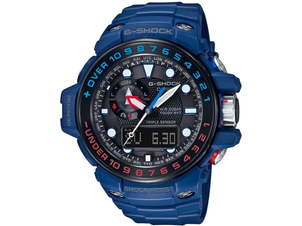 Hodinky Casio z oblíbené řady G‑Shock si zamiluje každý muž, který hledá spojení odolnosti, moderního stylu a široké škály funkcí. Jejich výrazná modrá barva dokonale podtrhuje kulatý tvar pouzdra a dodává hodinkám sportovně‑elegantní vzhled. Kvalitní minerální sklíčko chrání kombinovaný analogový i digitální ciferník v černé barvě, který je perfektně čitelný za všech okolností. Díky vodotěsnosti 200 m (20 ATM) jsou hodinky vhodné i pro náročné vodní sporty a potápění bez kyslíkového přístroje.