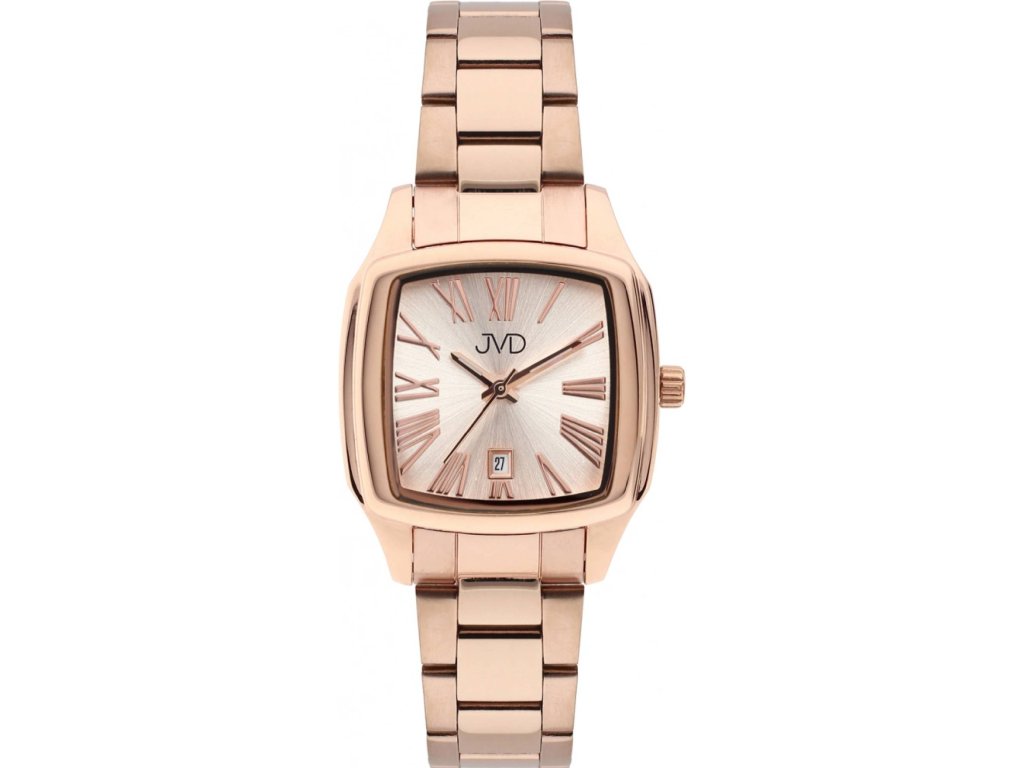 Dámské náramkové hodinky JVD W78.3 představují elegantní doplněk s jemným nádechem klasiky. Pouzdro o rozměrech 29,5 x 37,5 mm je vyrobeno z kvalitní nerezové oceli a opatřeno luxusní povrchovou úpravou IPRose (růžové zlato). Čitelný ciferník s tradičními římskými číslicemi chrání minerální tvrzené sklíčko se zvýšenou odolností proti poškrábání. O spolehlivý chod se stará osvědčený japonský strojek Miyota. Hodinky doplňuje klasický kovový náramek o šířce 16 mm, který zajišťuje komfortní nošení. Vodotěsnost 3 ATM chrání hodinky před náhodným kontaktem s vodou nebo deštěm.