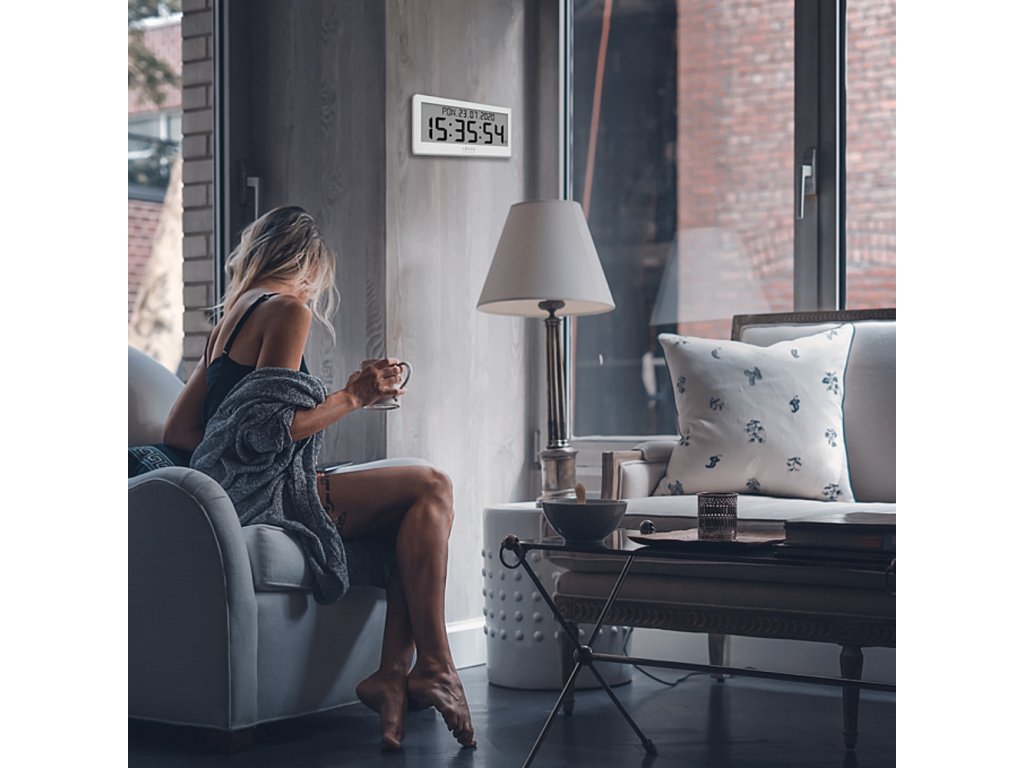 Velké digitální hodiny LAVVU MODIG RADIO CONTROLLED byly navrženy s ohledem na jednoduchost, přehlednost a krásu času. Jsou řízeny rádiovým signálem z Německa, díky čemuž se po vložení baterií samy automaticky nastaví a budou vám spolehlivě ukazovat naprosto přesný čas: hodinu, minutu, vteřinu, den v týdnu, datum i aktuální rok. Pro zobrazení dne je navíc možné zvolit jeden z 10 přednastavených jazyků včetně češtiny.