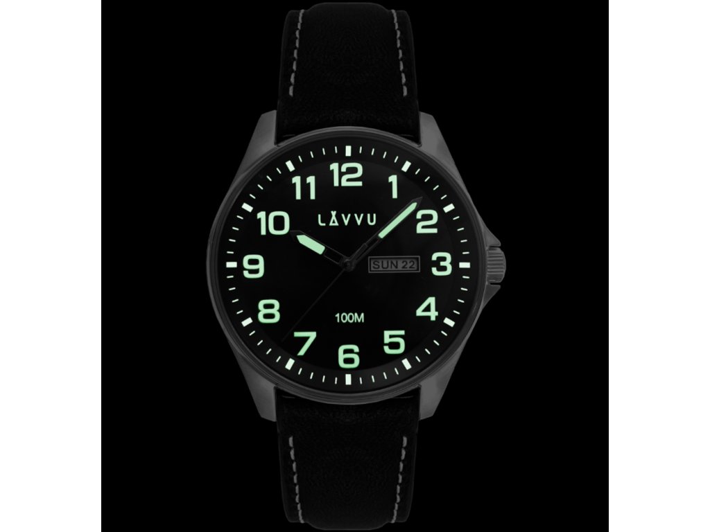 LAVVU Ocelové pánské hodinky BERGEN Black / Top Grain Leather se svítícími čísly