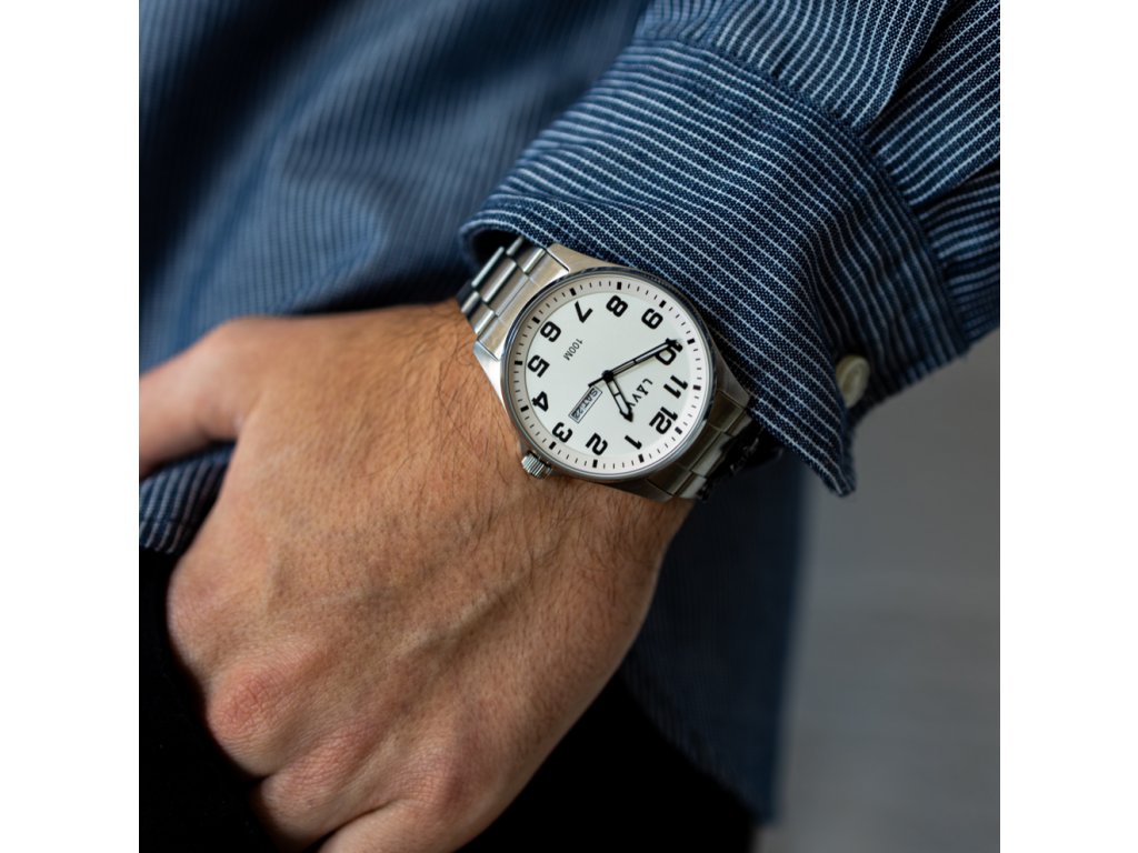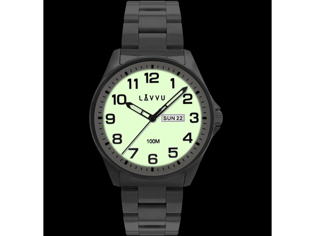 LAVVU Ocelové pánské hodinky BERGEN White se svítícím číselníkem