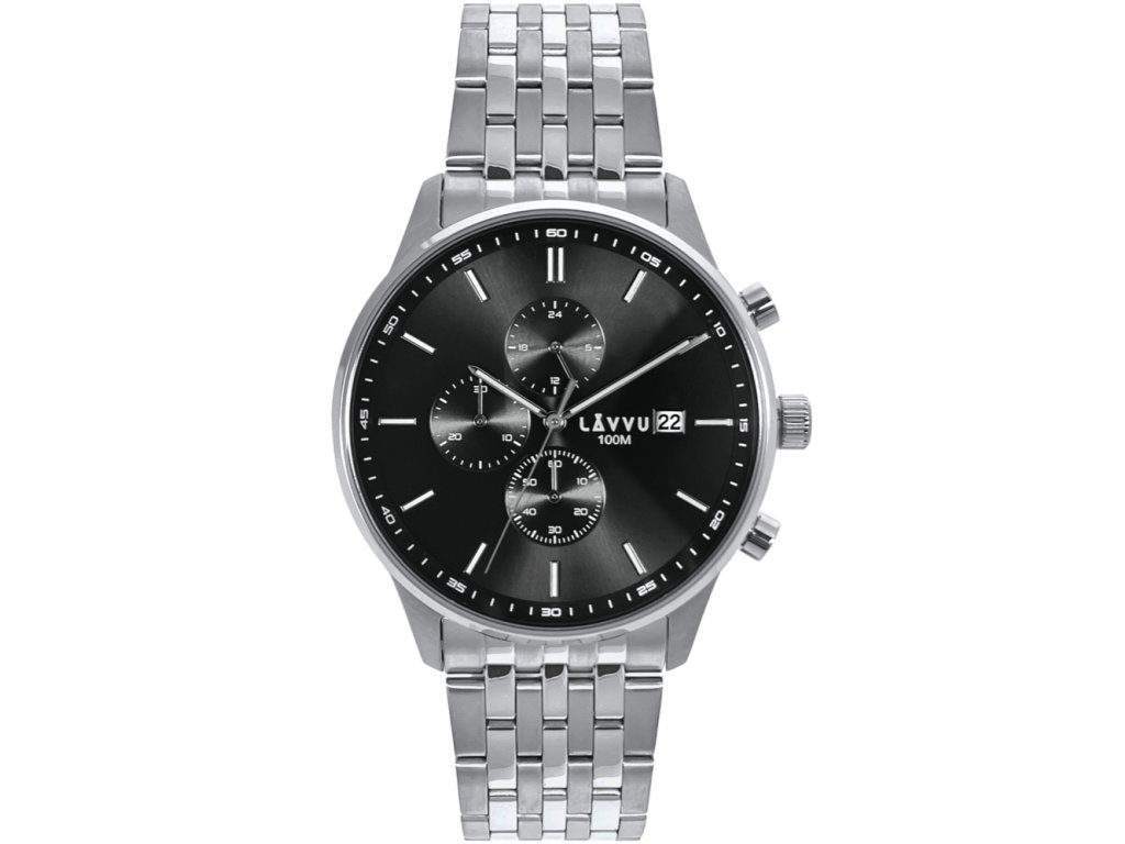 Odolné hodinky značky LAVVU s chronografem, vyrobené z hypoalergenní nerezové oceli. Nadstandardní vodotěsnost 100M, minerální tvrzené sklíčko, ukazatel data a stylový design z nich tvoří spolehlivý doplněk, který bude skvěle vypadat k formálnímu i volnočasovému oblečení. Vyměnitelný řemínek je možné zkrátit a přizpůsobit obvodu ruky.