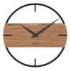 V průměru mají 35 cm, otvory v černém kruhu nezakrývá žádné sklo a dýhovaný střed dodají interiéru tu pravou industriální atmosféru. Ačkoliv je tento model hodin zaměřen hlavně na design, díky výrazným indexům stále snadno přečtete, kolik je hodin.