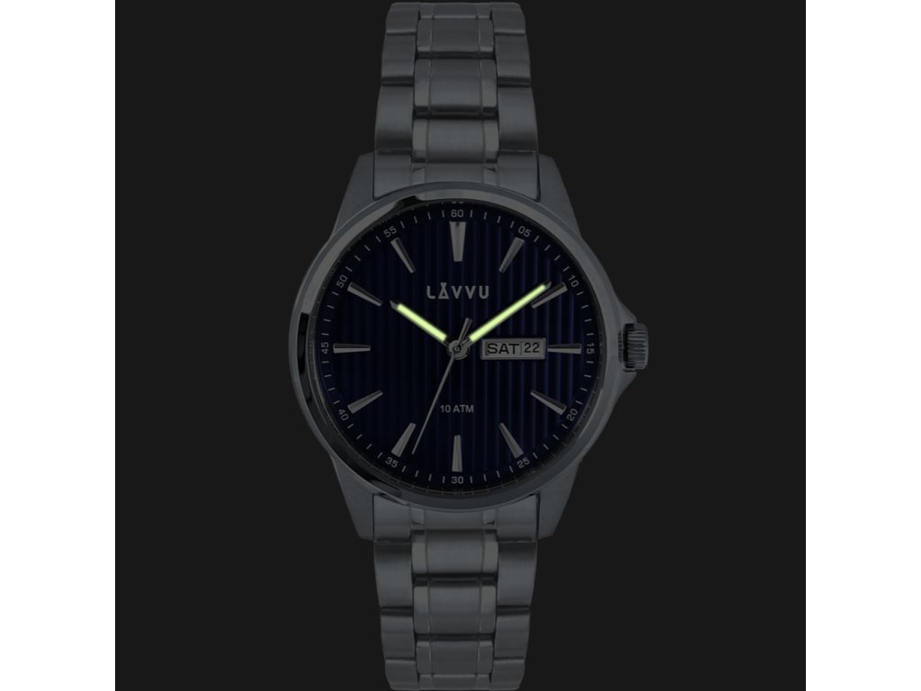 Spolehlivé hodinky LAVVU z nerezové oceli vynikají špičkovou odolností díky prověřeným materiálům a kvalitním komponentům. S vodotěsností 100M zvládnou náročné podmínky i vodní sporty. Číselník s výraznými indexy zajistí perfektní čitelnost a ukazatel data se dnem v týdnu bude vaším praktickým společníkem každý den. Vyměnitelný řemínek je možné zkrátit a přizpůsobit obvodu ruky.