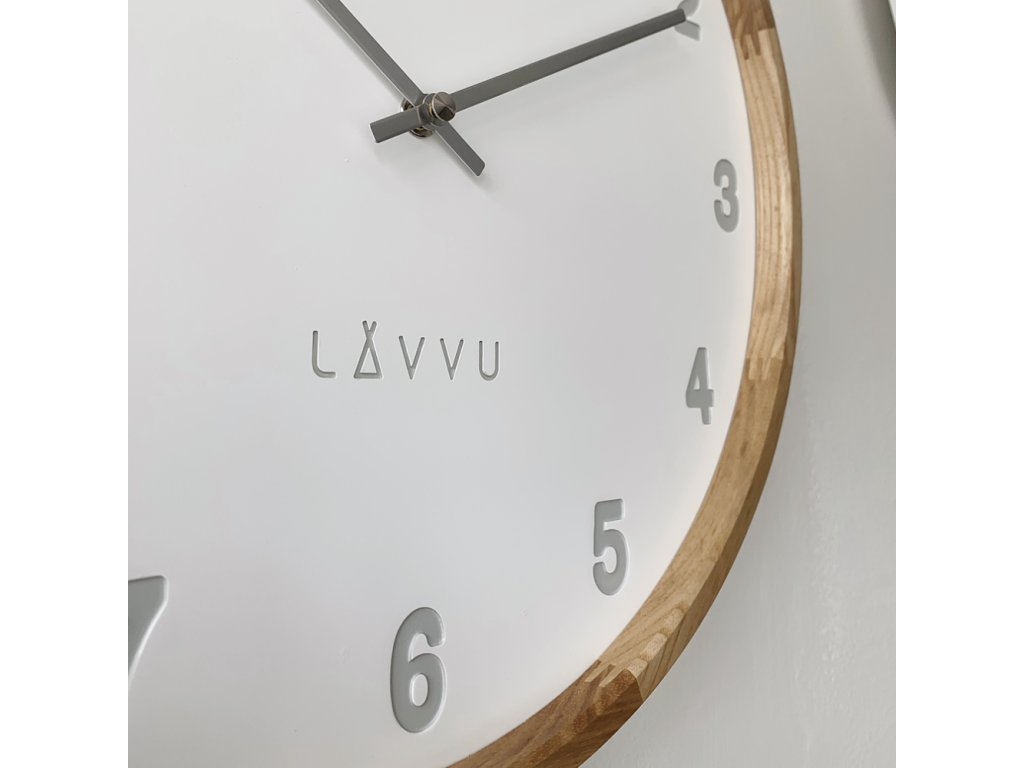 Hledáte dřevěné hodiny do moderního interiéru? Hodiny LAVVU FADE s průměrem 35 cm a 3D číselníkem odlitým z polyresinu dodají místnosti útulnou a přívětivou atmosféru.