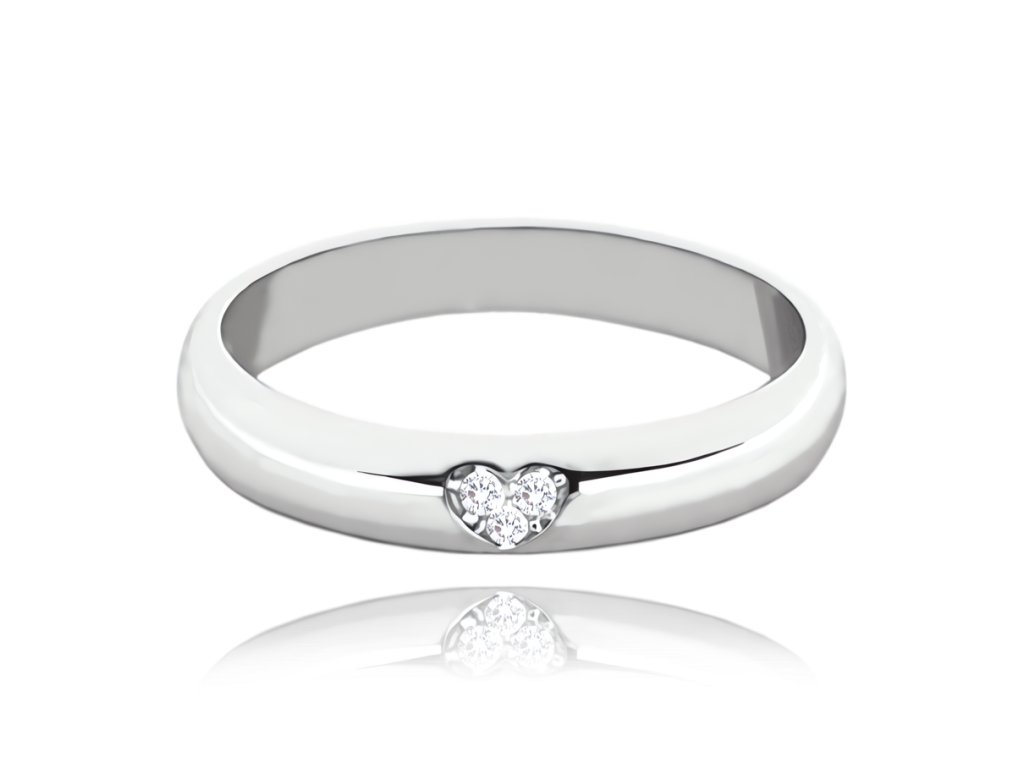 MINET+ Stříbrný snubní prsten se srdíčkem a bílými zirkony vel. 51