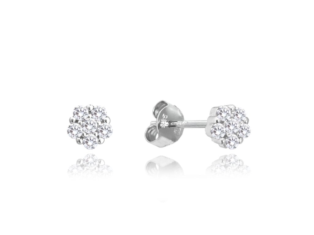 MINET Dětské stříbrné náušnice KYTIČKY s bílými zirkony