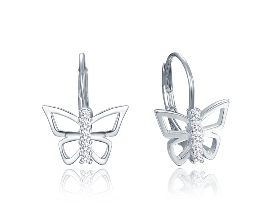 Náušnice jsou na hřbetu a hlavě motýla zdobené třpytivými zirkony.