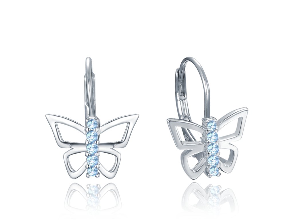 MINET Dětské stříbrné náušnice motýlci s modrými zirkony