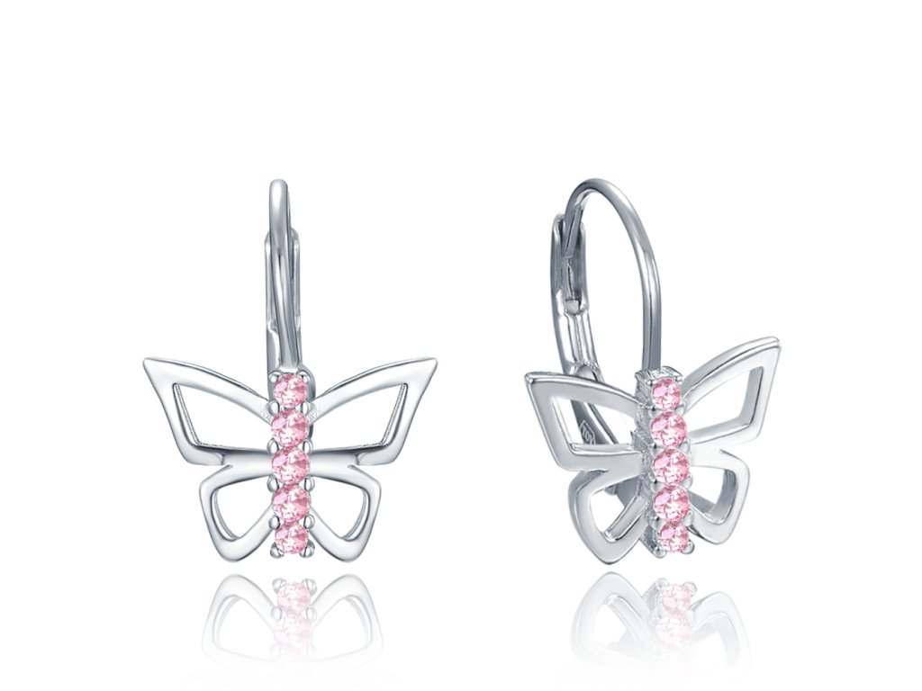 MINET Dětské stříbrné náušnice motýlci s růžovými zirkony