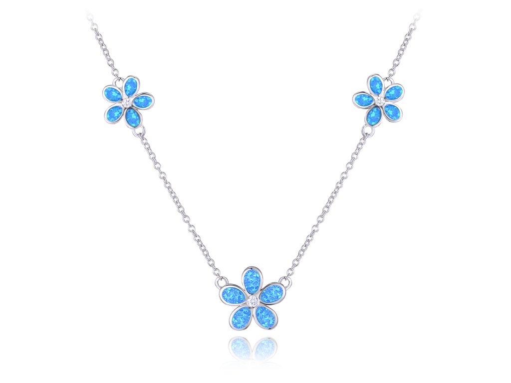 MINET Dětský stříbrný náhrdelník KYTIČKY s modrými opálky