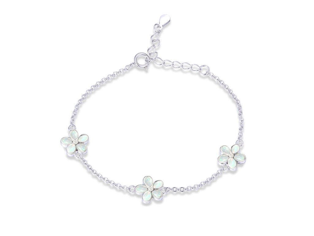 MINET Dětský stříbrný náramek KYTIČKY s bílými opálky