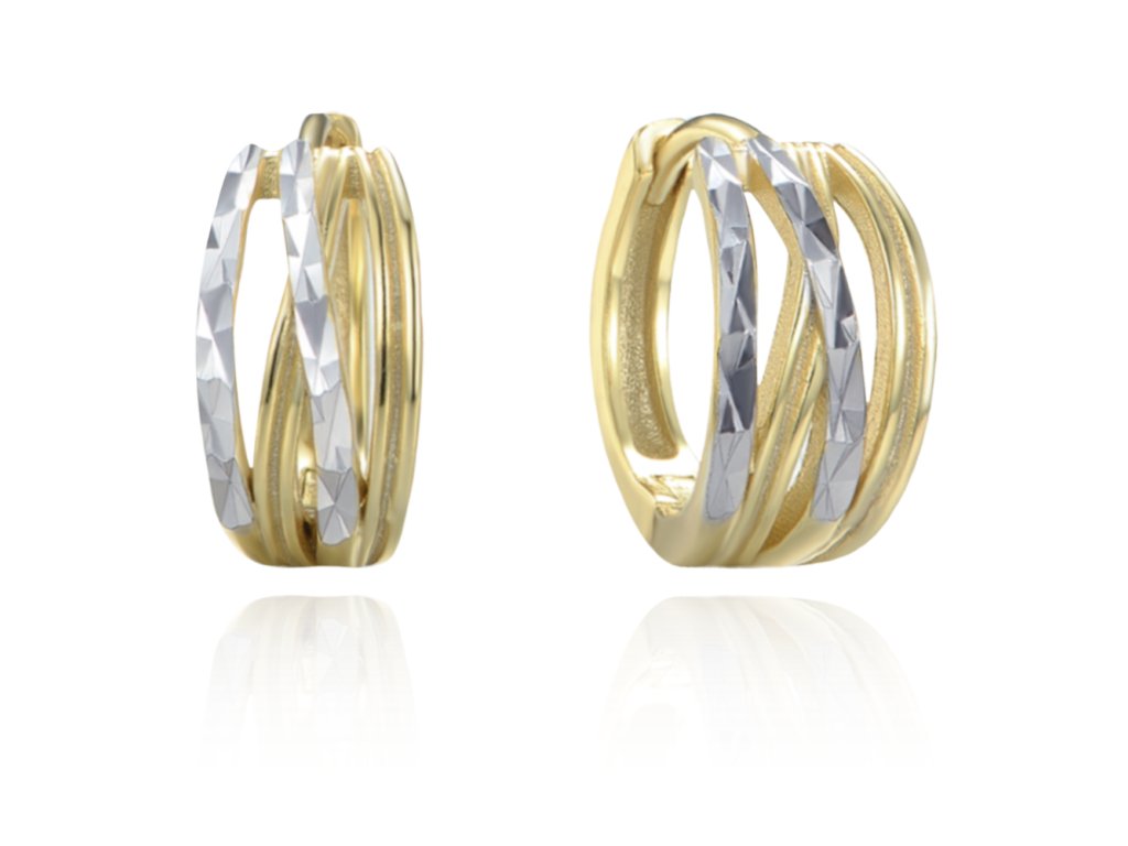 MINET Dvoubarevné broušené stříbrné náušnice kroužky