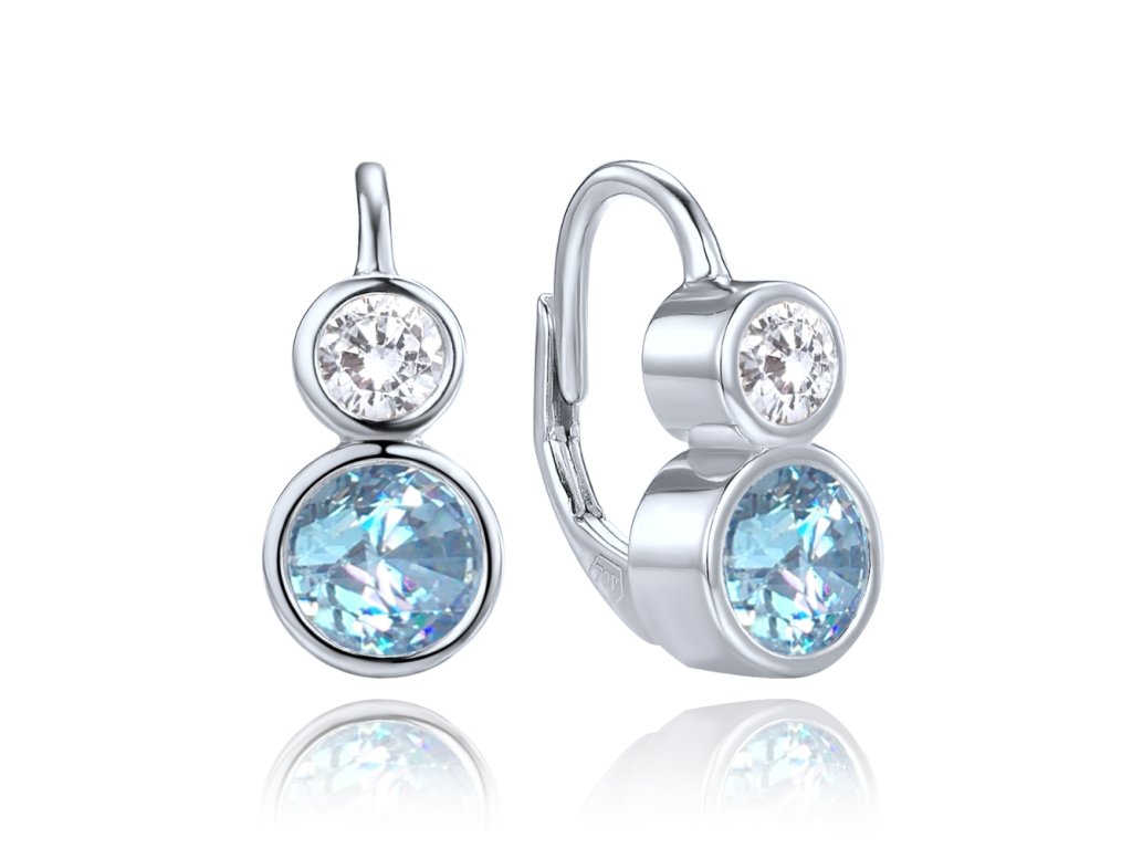 MINET Elegantní stříbrné náušnice s bílými a modrými zirkony