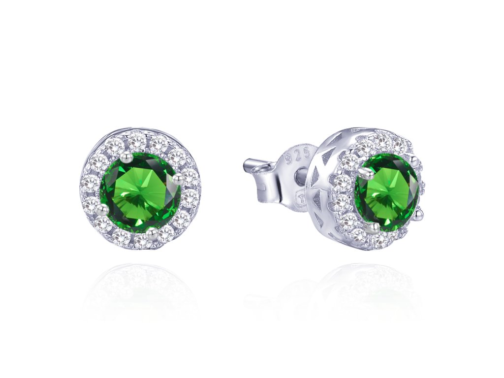 MINET Elegantní stříbrné náušnice s bílými a zelenými zirkony