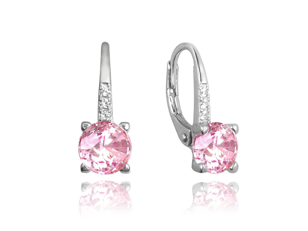 MINET Elegantní stříbrné náušnice s růžovým zirkonem