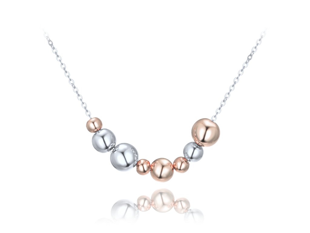 MINET Elegantní stříbrný náhrdelník se stříbrnými a Rosegold kuličkami