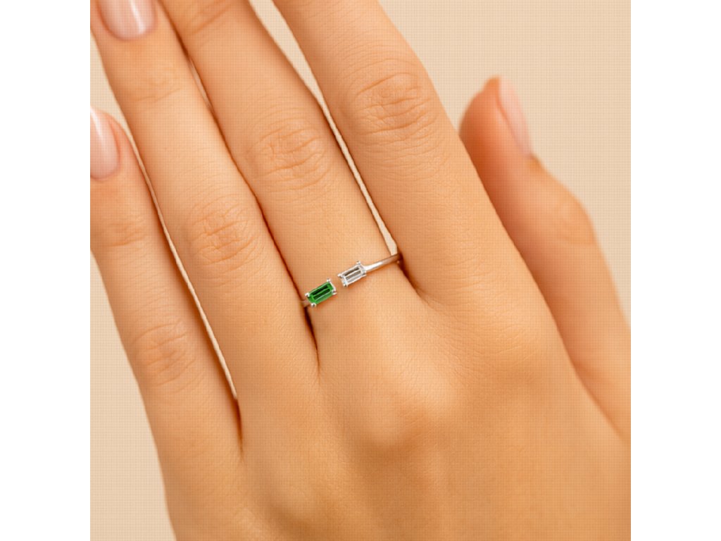 MINET Elegantní stříbrný prsten s bílým a zeleným zirkonem vel. 52