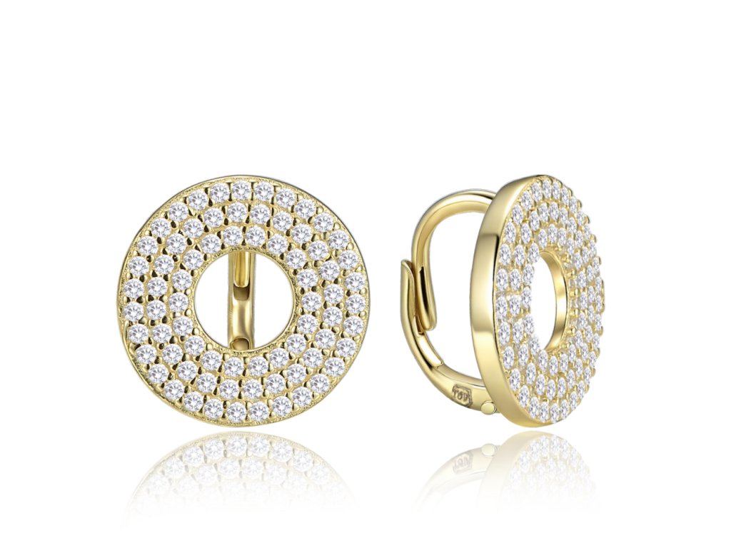 MINET Luxusní pozlacené kruhové stříbrné náušnice s bílými zirkony