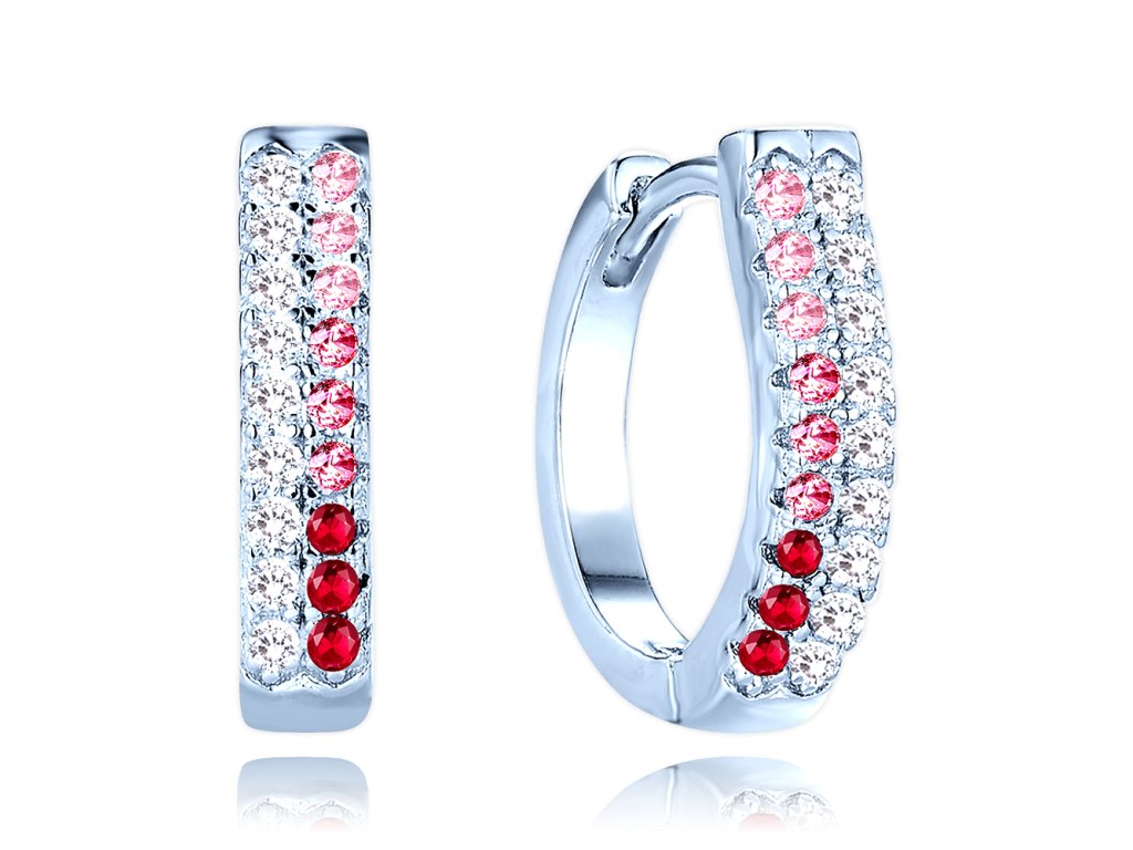 MINET Luxusní stříbrné náušnice s bílými, červenými a růžovými zirkony