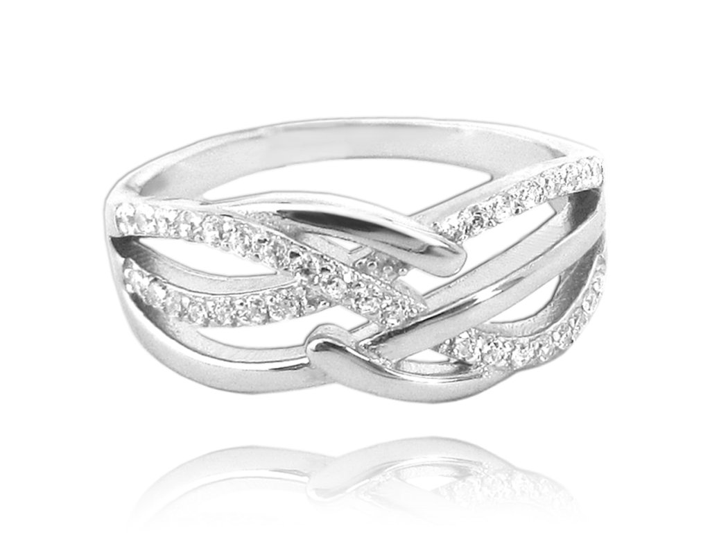 MINET Luxusní stříbrný prsten s bílými zirkony vel. 55