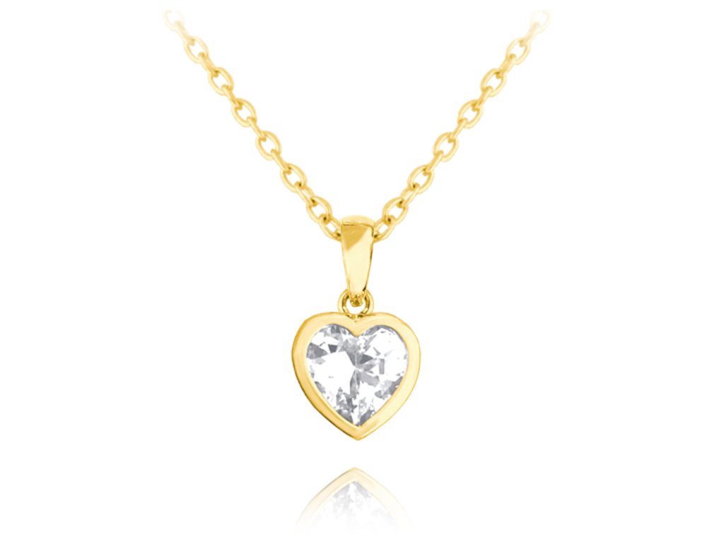 MINET Pozlacený dětský stříbrný náhrdelník SRDÍČKO s bílým zirkonem
