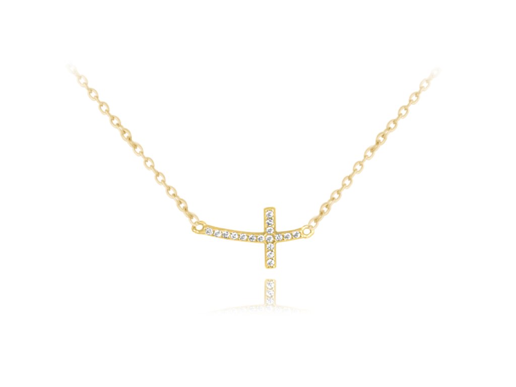 MINET Pozlacený stříbrný náhrdelník drobný ležatý KŘÍŽEK se zirkony
