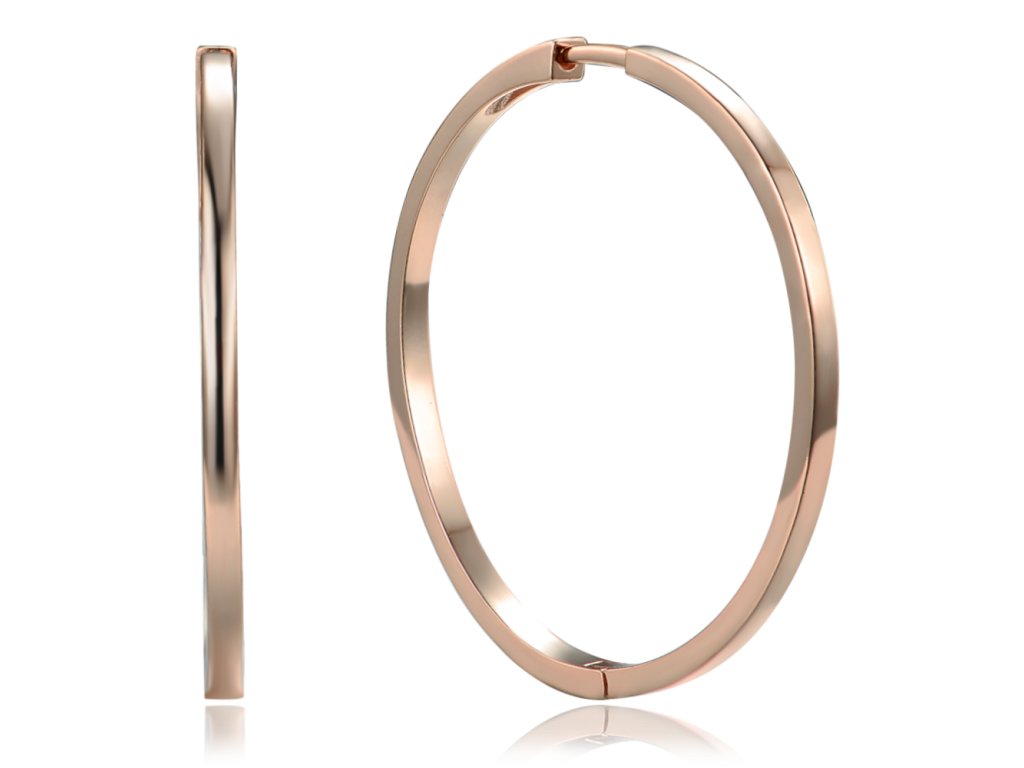 MINET Rose gold stříbrné náušnice hranaté kruhy 4 cm