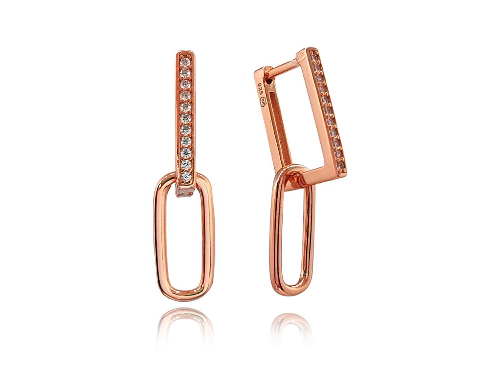 Elegantní náušnice s bílými zirkony jsou vyrobeny z pravého stříbra, pokrytého vrstvou růžového zlata. Skvěle se hodí pro každodenní nošení i příležitosti vyžadující výraznější outfit.