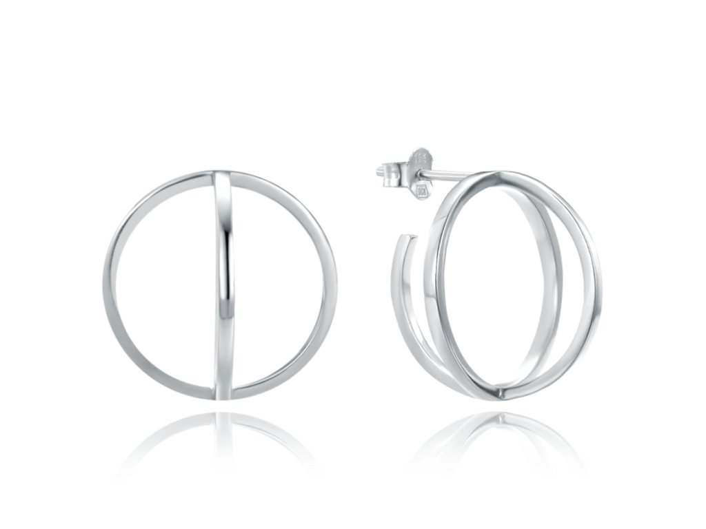 MINET Stříbrné dvojité kruhové geometrické náušnice