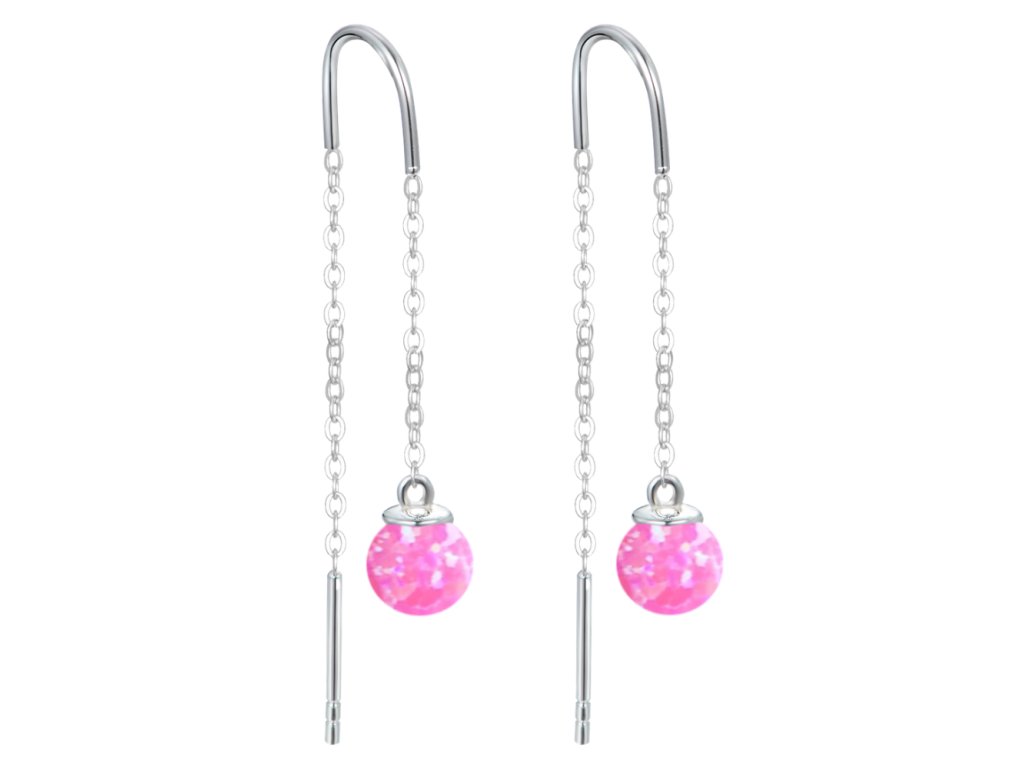 MINET Stříbrné náušnice hanging balls s růžovými opálky a zirkonem