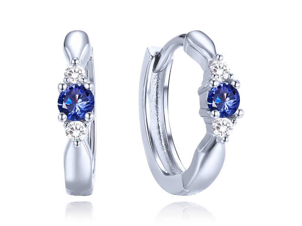 MINET Stříbrné náušnice s levandulově modrými a bílými zirkony