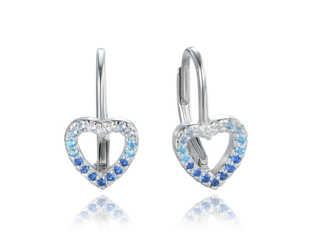 MINET Stříbrné náušnice srdce se zirkony v modrých odstínech