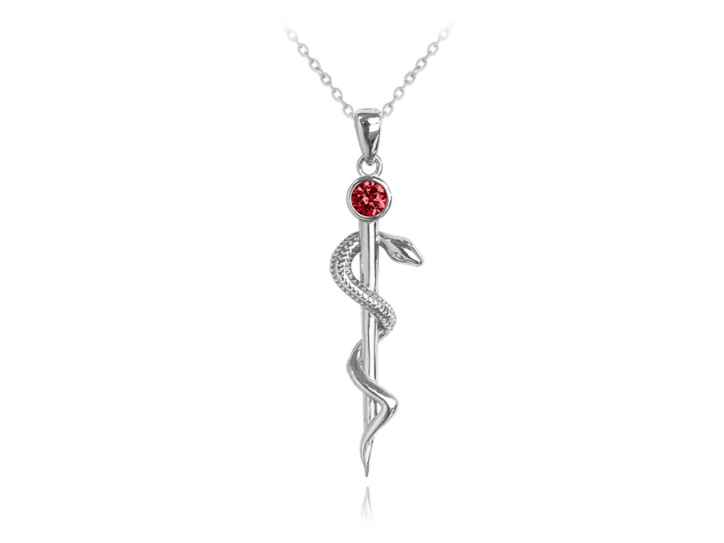 MINET Stříbrný náhrdelník AESKULAPOVA HŮL s červeným zirkonem