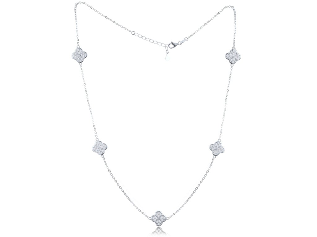 MINET Stříbrný náhrdelník čtyřlístky s bílými zirkony