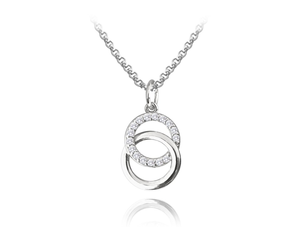 MINET Stříbrný náhrdelník KROUŽKY s bílými zirkony