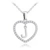 MINET Stříbrný náhrdelník písmeno v srdíčku "J" se zirkony