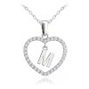 MINET Stříbrný náhrdelník písmeno v srdíčku "M" se zirkony