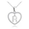 MINET Stříbrný náhrdelník písmeno v srdíčku "R" se zirkony