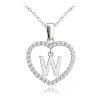 MINET Stříbrný náhrdelník písmeno v srdíčku "W" se zirkony