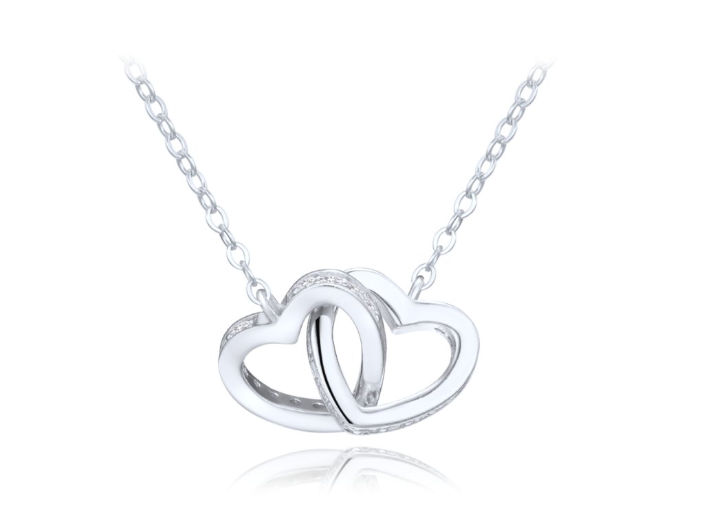 MINET Stříbrný náhrdelník spojená srdíčka s bílými zirkony