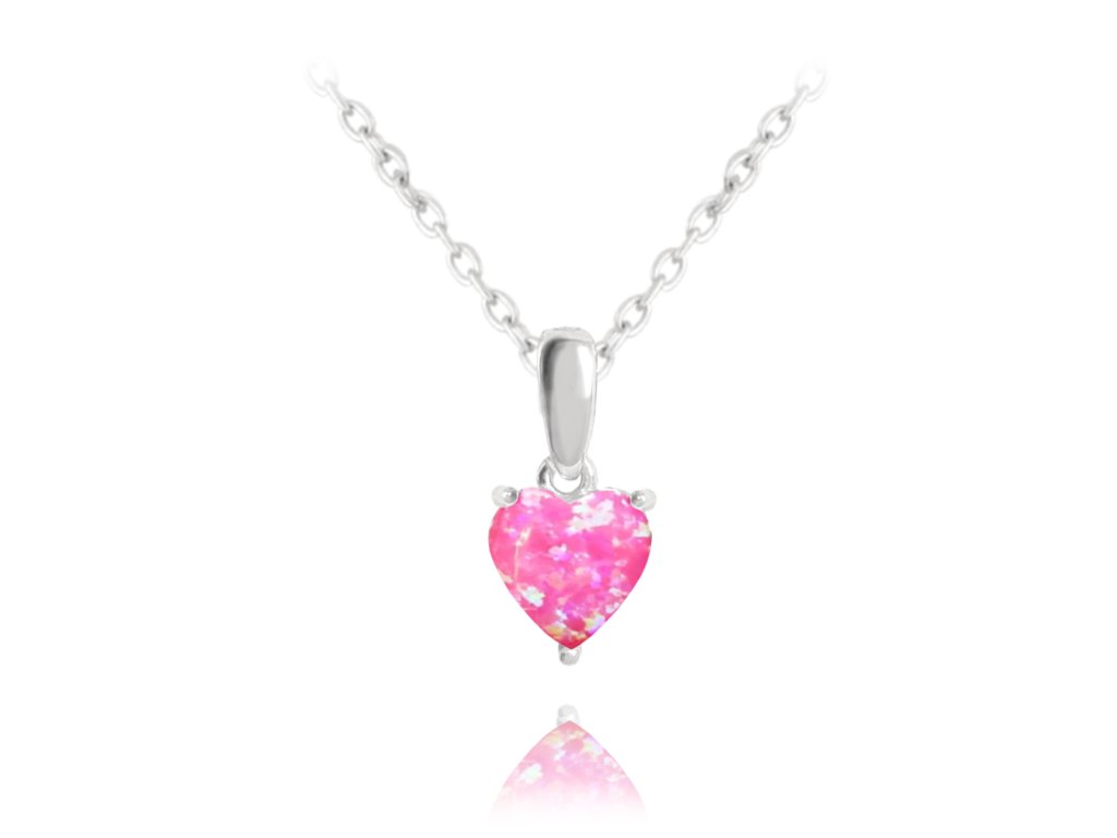 MINET Stříbrný náhrdelník SRDÍČKO s růžovým opálkem