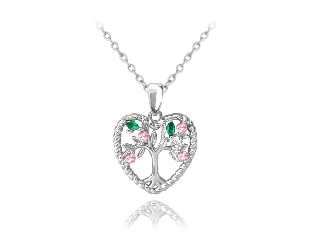 MINET Stříbrný náhrdelník STROM ŽIVOTA V SRDCI s barevnými zirkony